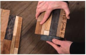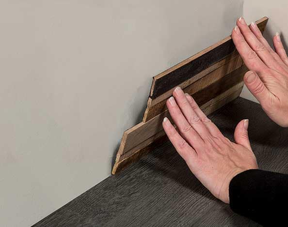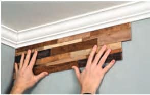 Measure the first area to be covered by Rustic Grove Wood Wall Panels. We recommend you lay out the entire project on a flat surface, like a table or floor, before adhering to the substrate to be sure you have enough panels, and your design and layout is correct. This will also give you good reference as to how the panels will look on your wall. As you lay out the panels, make sure the colors (which vary slightly like all wood), and seams are to your liking.