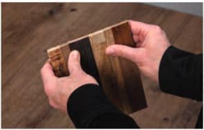 Many types of edge trims can be found at your local home center. Wood trims look great, too. If a cut edge showing exposed wood doesn’t match, use stain to color it to your satisfaction.
