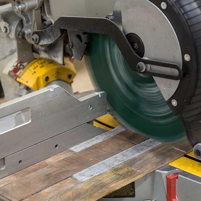 A manual or powered miter saw is the recommended cutting tool for the wood panels. Use a jigsaw for cutting notches or other more intricate cutouts such as an electrical outlet.